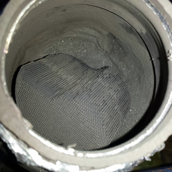 Длительное использование автомобиля приводит к истончению или исчезновению металлического слоя на керамических сотах. Как следствие, исчезает функция нейтрализации выхлопа.